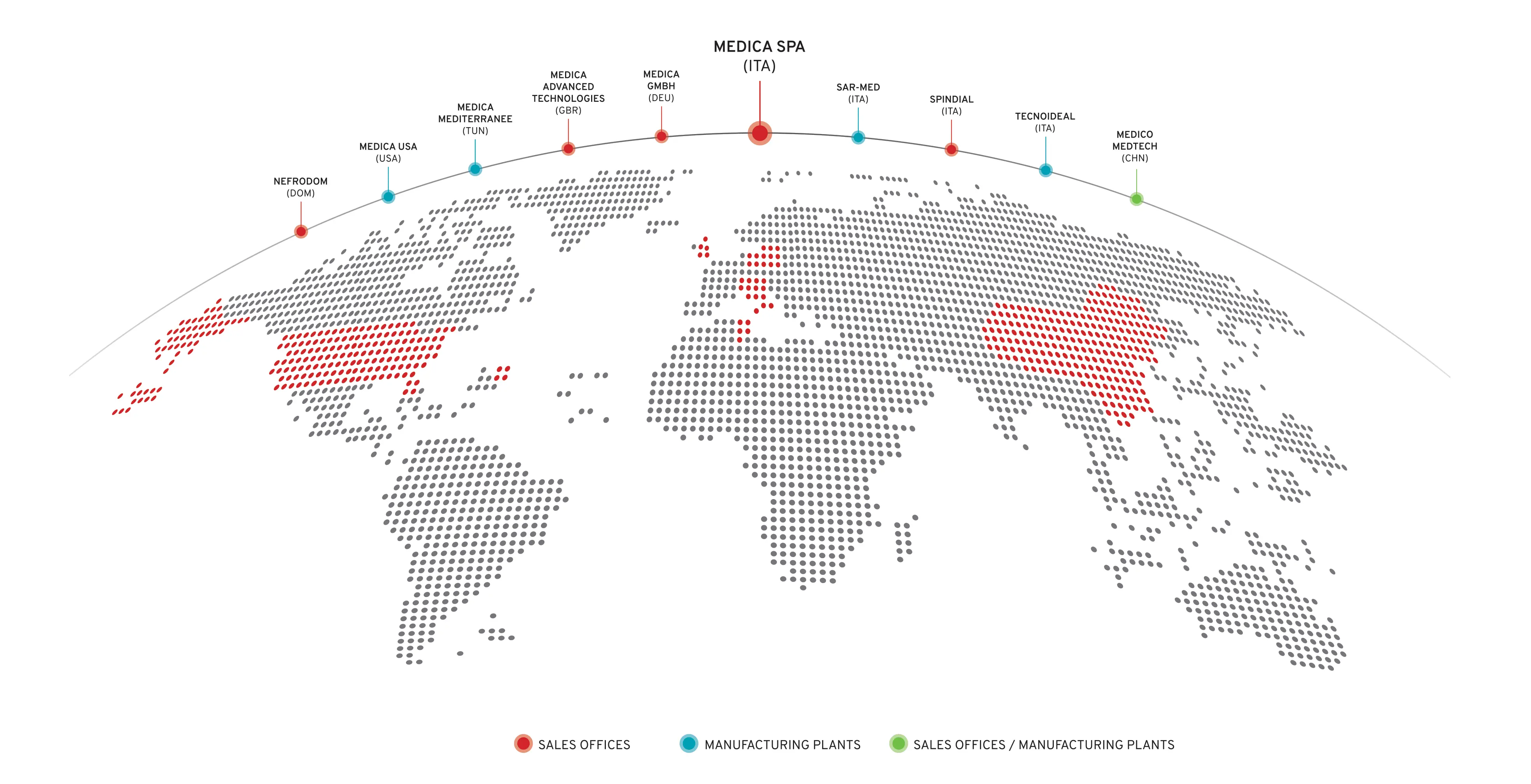Over the years, Medica S.p.A.'s R&D activities have been complemented by a highly automated production capacity in various plants in Italy and abroad, where the company has several subsidiaries.
